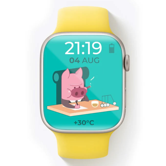 Animated watch screen created for our lovable Capitalist Pig character