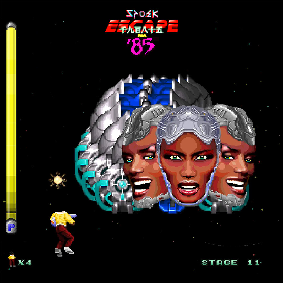Escape from ’85 was originally going to be a straight 4-minute music video in the style of ‘Space Harrier’ but instead became a fully playable 11-track Hip Hop album.